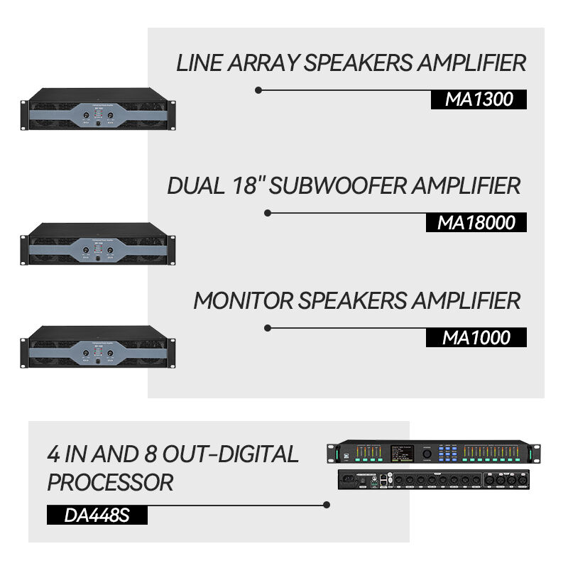 Het wordt toegepast in geluidsversterkingslocaties zoals grote optredens, conferenties en mobiele shows. Het kan naar behoefte worden aangepast om duidelijke geluidsversterking te bieden en snel een systeem op te zetten.